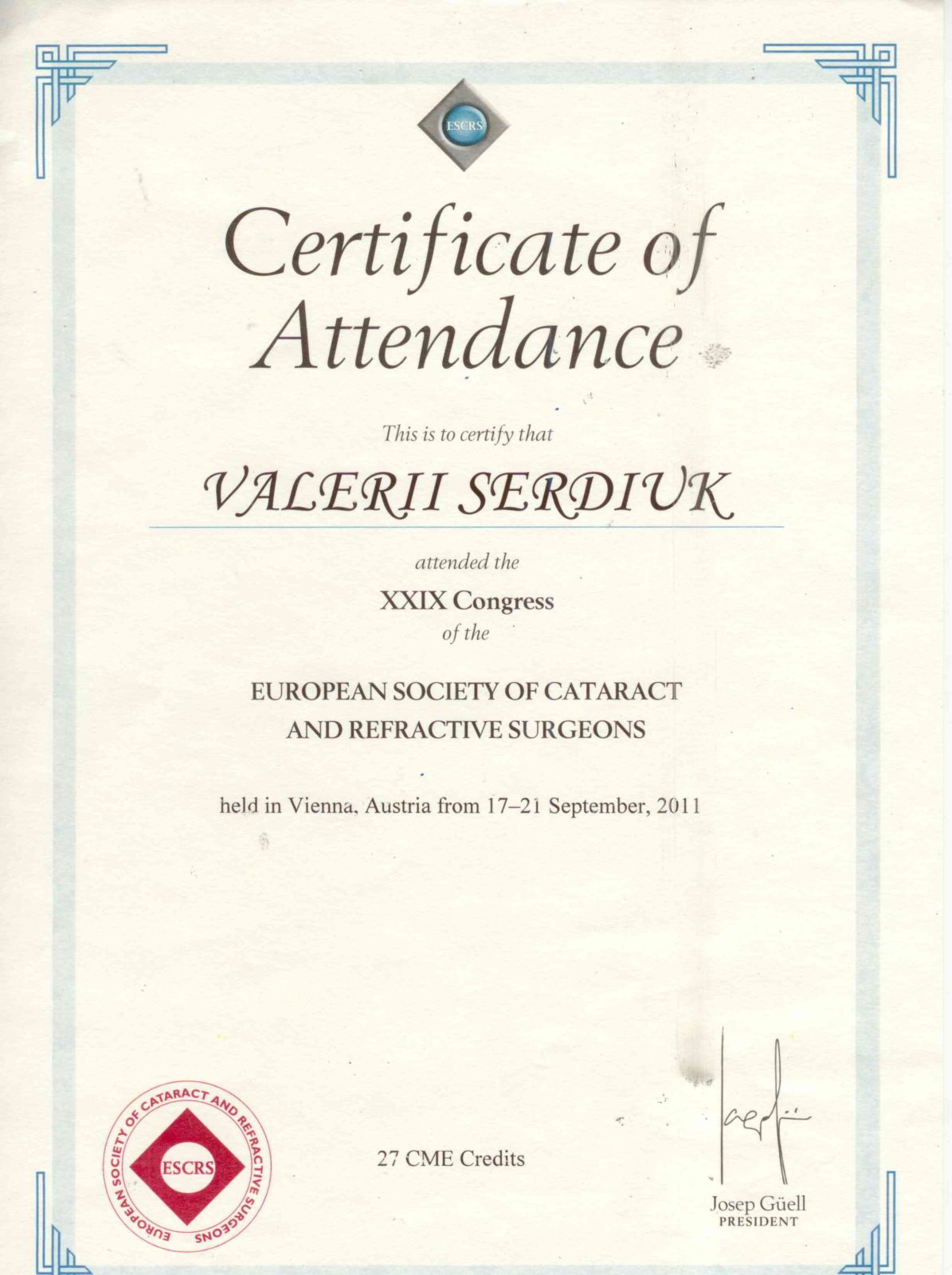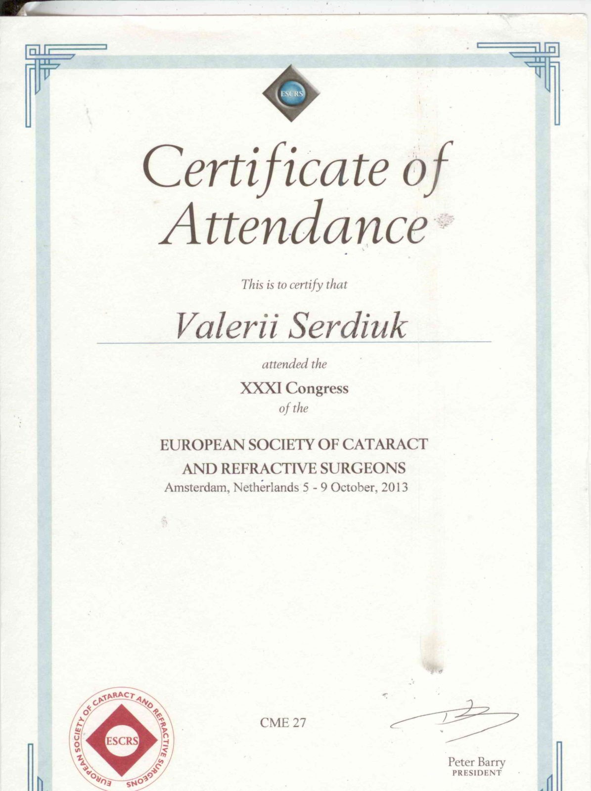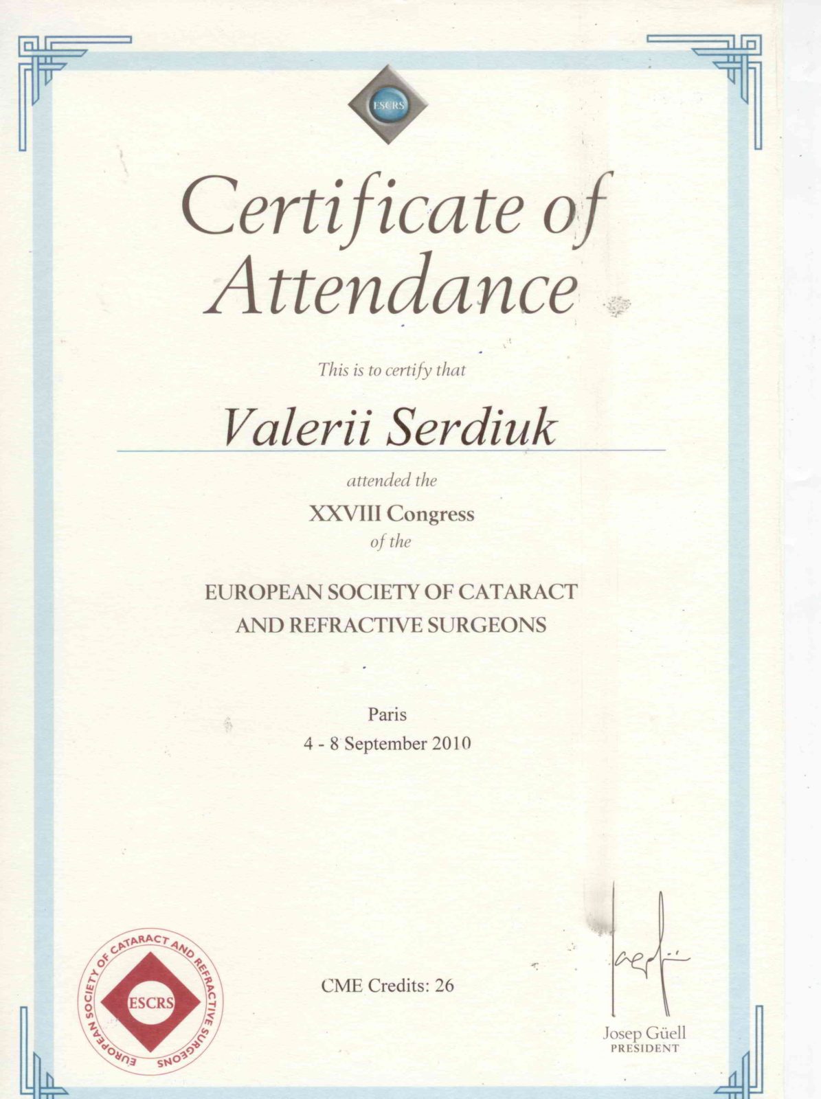 Валерій Миколайович Сердюк — доктор медичних наук, професор, провідний офтальмолог-хірург з більш ніж 30-річним досвідом. Засновник та керівник офтальмологічного центру Ophthalmology-group. Виконав понад 15 000 операцій на очах. Спеціалізується на мікрохірургії катаракти, кератопластиці, лікуванні глаукоми та складних патологій сітківки. Автор понад 100 наукових публікацій, має 12 патентів на винаходи в офтальмології.