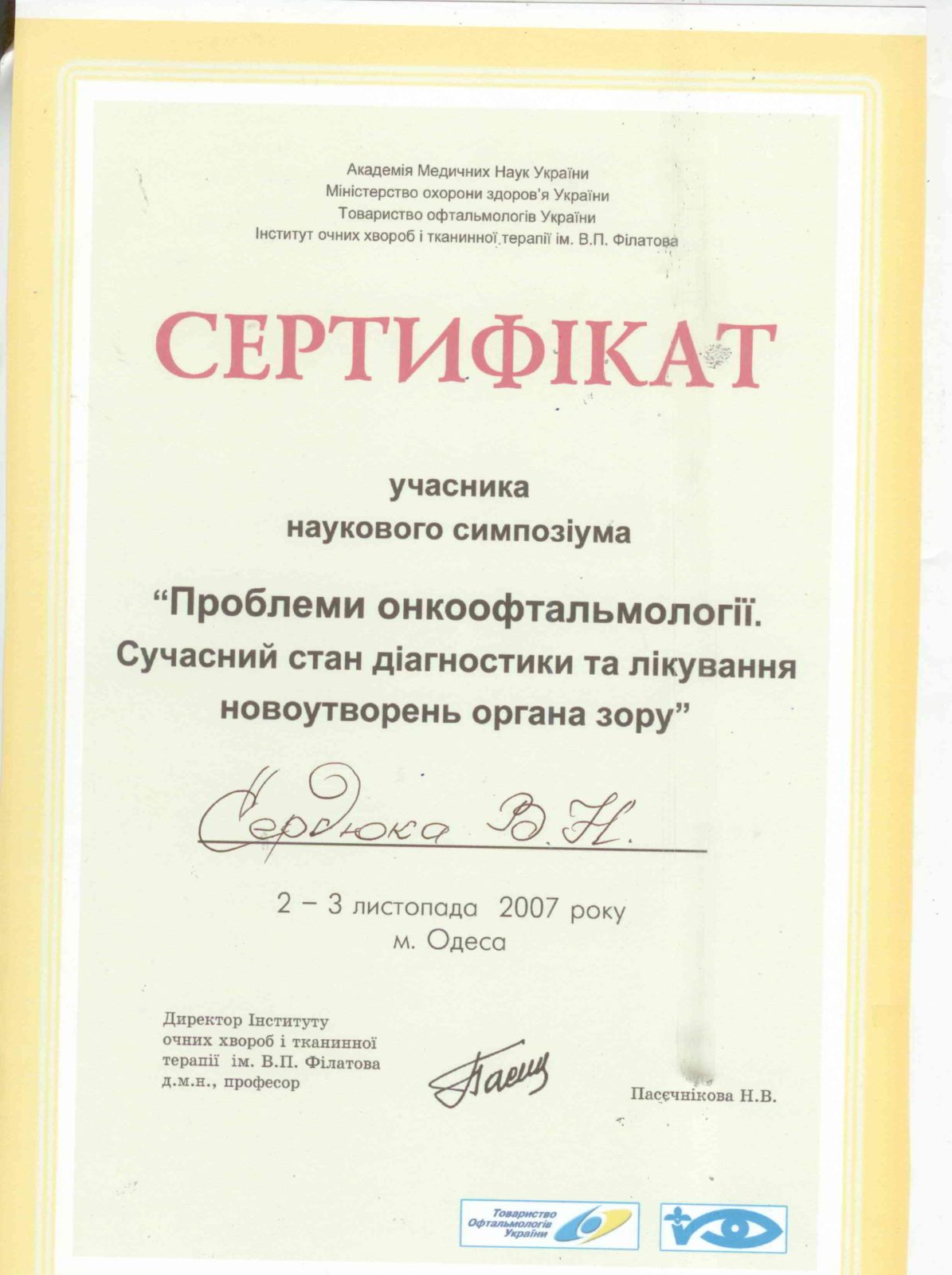 Професор, доктор медичних наук, Заслужений лікар України